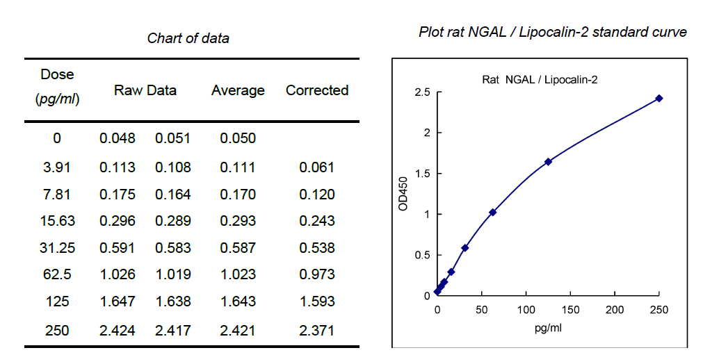 注:本图仅供参考,应以同次试验标准品所绘标准曲线计算标本中天然和重组大鼠NGAL/Lipocalin-2的含量。