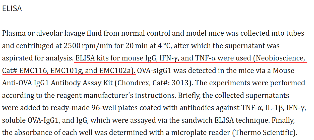 引用产品:Mouse IgG ELISA Kit、Mouse IFN-γ ELISA Kit、Mouse TNF-α ELISA Kit